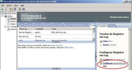 - Abra o GERENCIAMENTO do ISA Server selecioneMonitorandoDEPOISLoge clique emConfigurar registro de proxy da Web .